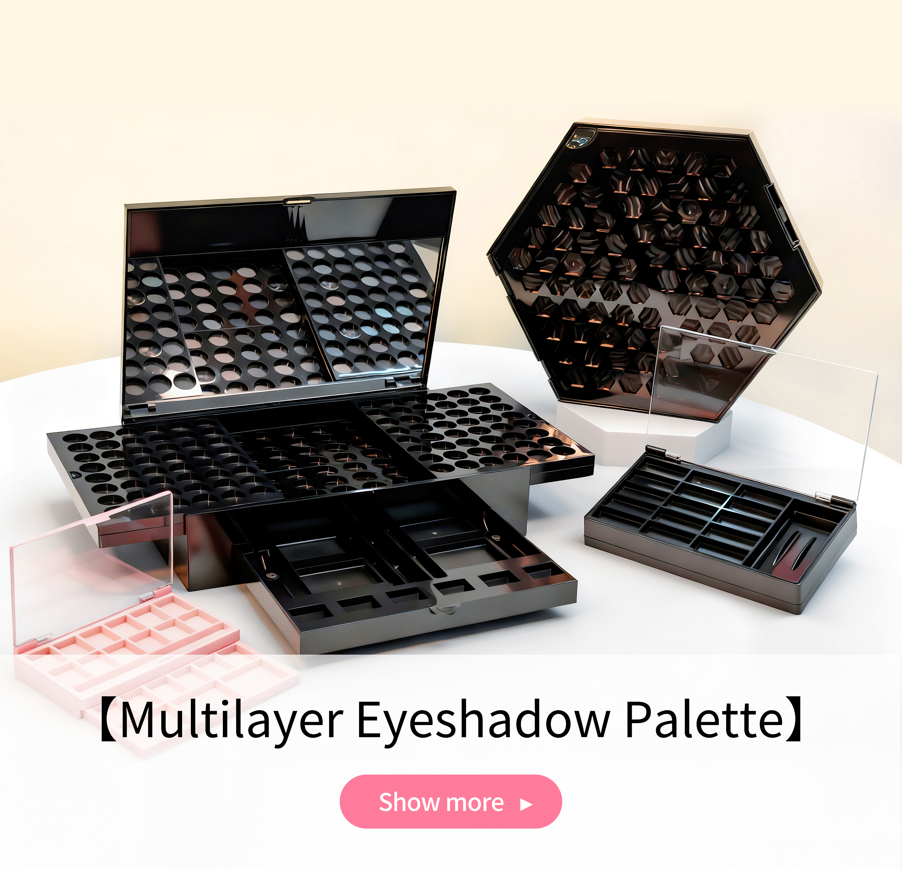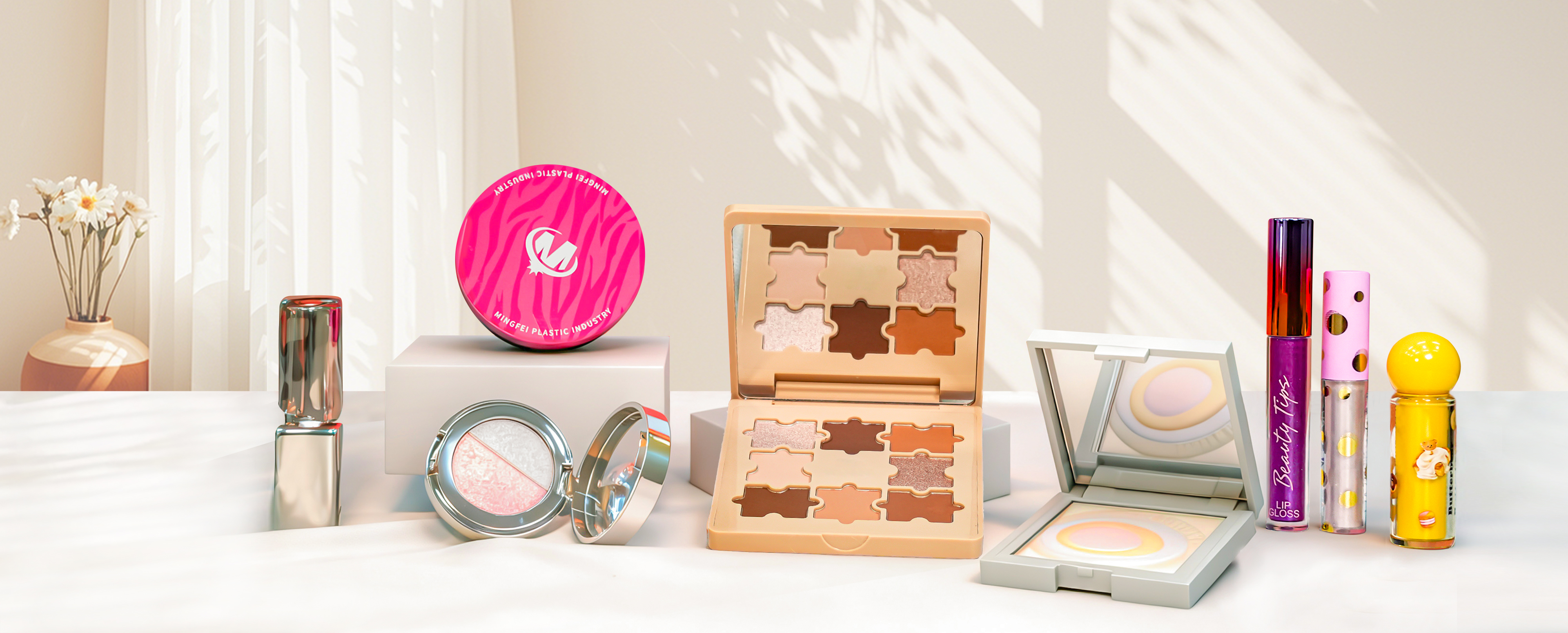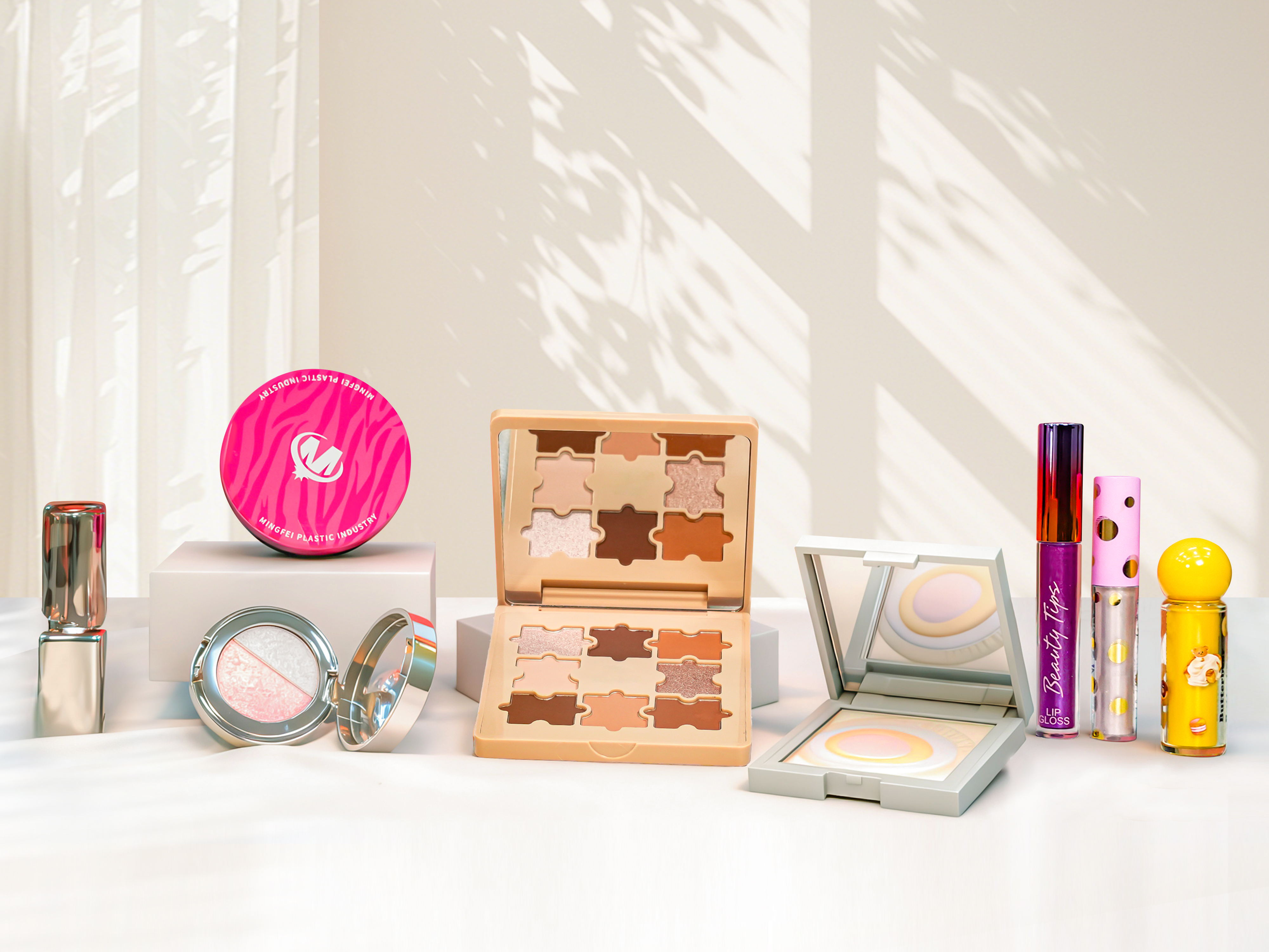 We focus on packaging development,design,mold manufacturing, production and sales.Our main products include powder compact boxes,eye shadow boxes,makeup set boxes,leather bag boxes,lipstick tubes,lipgloss tubes,eyelash tubes,lip balm boxes and otherplastic products, as well as plastic box mold manufac-turing. Our products are exported to North America,Europe,Southeast Asia and other regions.We handleeach project with the customer oriented philosophy,ensuring to provide customized solutions that meetyour unique needs.From concept to delivery, we are committed to creating packagingthat can reflect your brand image while maintaining the highest quality and efficiency standards.